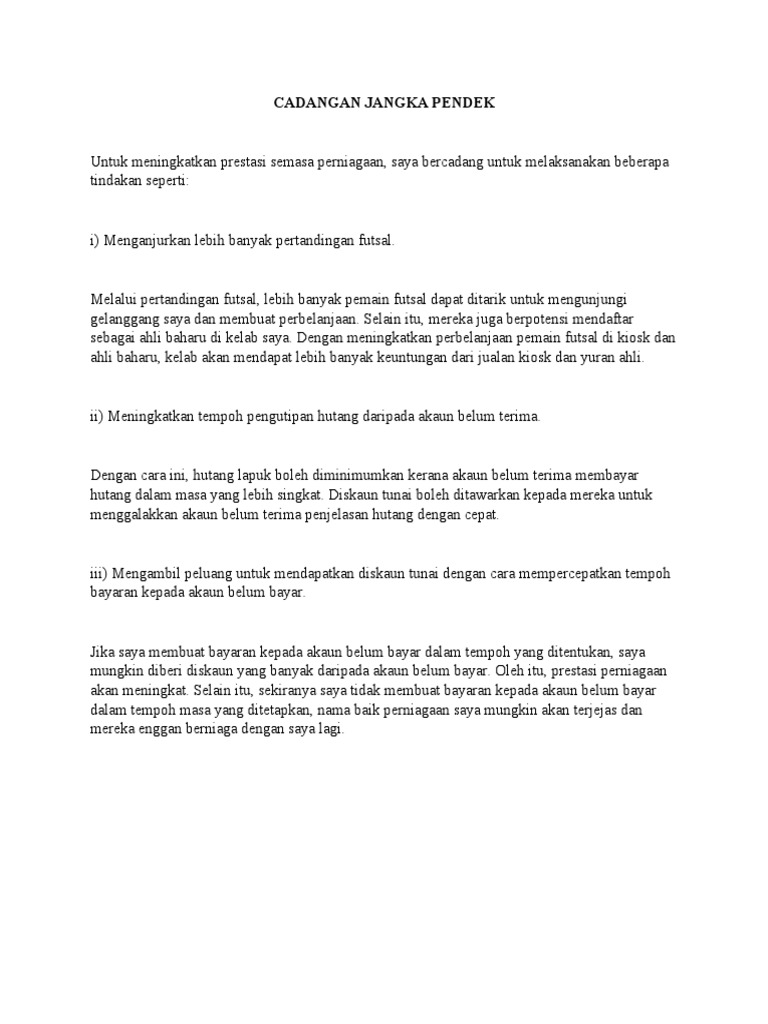 Contoh Cadangan Jangka Masa Pendek Dan Panjang Pdf